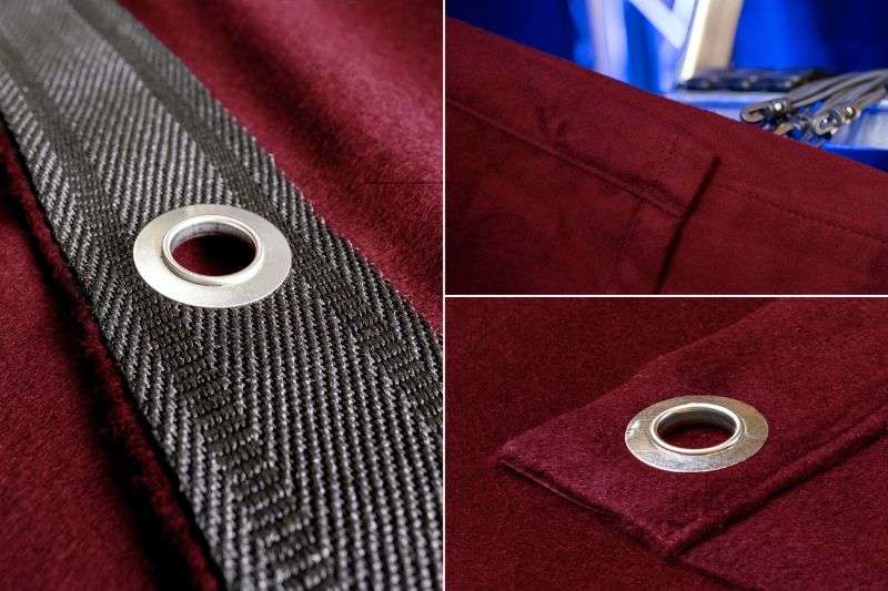 Bühnenmolton B1 konfektioniert in Bordeauxrot vereint effektiven Brandschutz, ausgezeichnete akustische Eigenschaften sowie Blickdichtigkeit und schafft dadurch sowohl sichere als auch atmosphärisch hochwertige Lösungen. Der fertige Vorhang ist 6 x 5 Meter groß. Eine 6-Meter-Seite ist mit Gurtband verstärkt und alle 25 cm mit Edelstahlösen versehen. Wählen Sie bei Ihrer Bestellung zwischen zwei Ösengrößen.Bühnenmolton konfektioniert - Flexibel einsetzbar, die perfekte Lösung