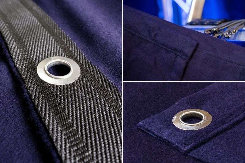 - Geöste obere Seite mit Gurtband verstärkt, alle 25 cm mit Edelstahlösen versehen. Wählen Sie je nach Durchmesser Ihrer Vorhangstange zwischen zwei Ösengrößen: